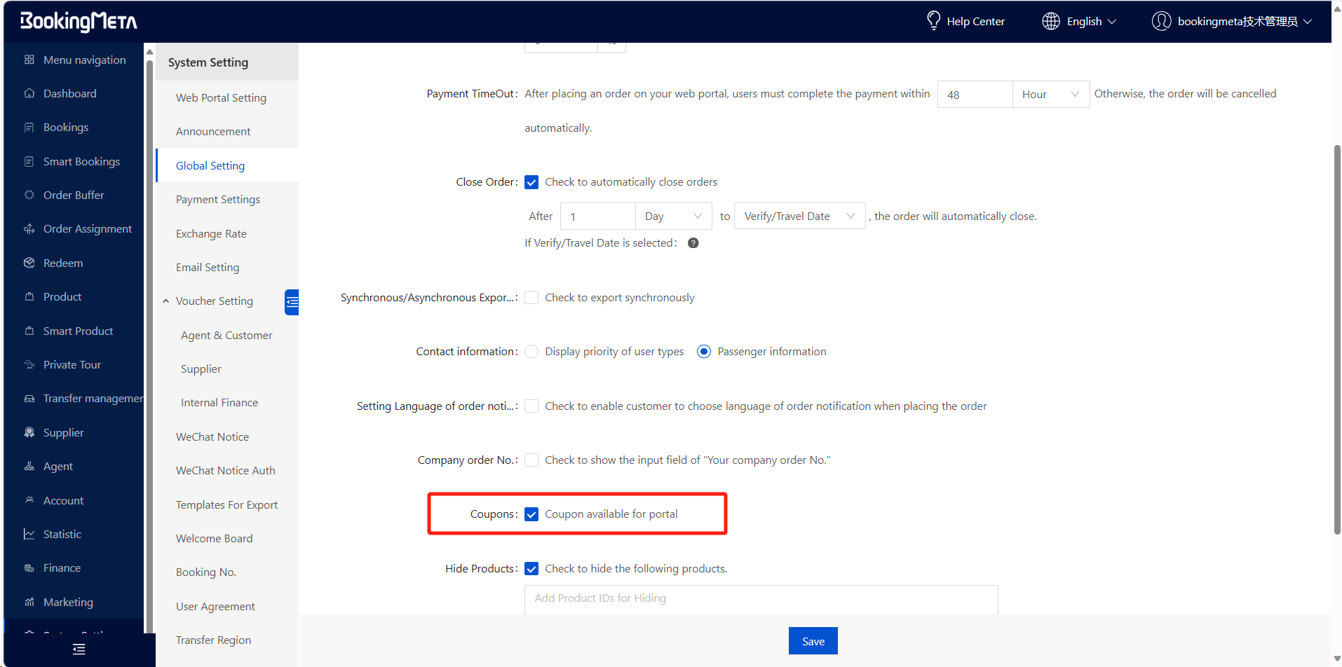 Please note that before issuing the coupon code, please turn on the portal coupon switch in System Settings->Global Configuration so that portal users can use the coupon. If there are no unforeseen circumstances, please keep this switch on all the time.